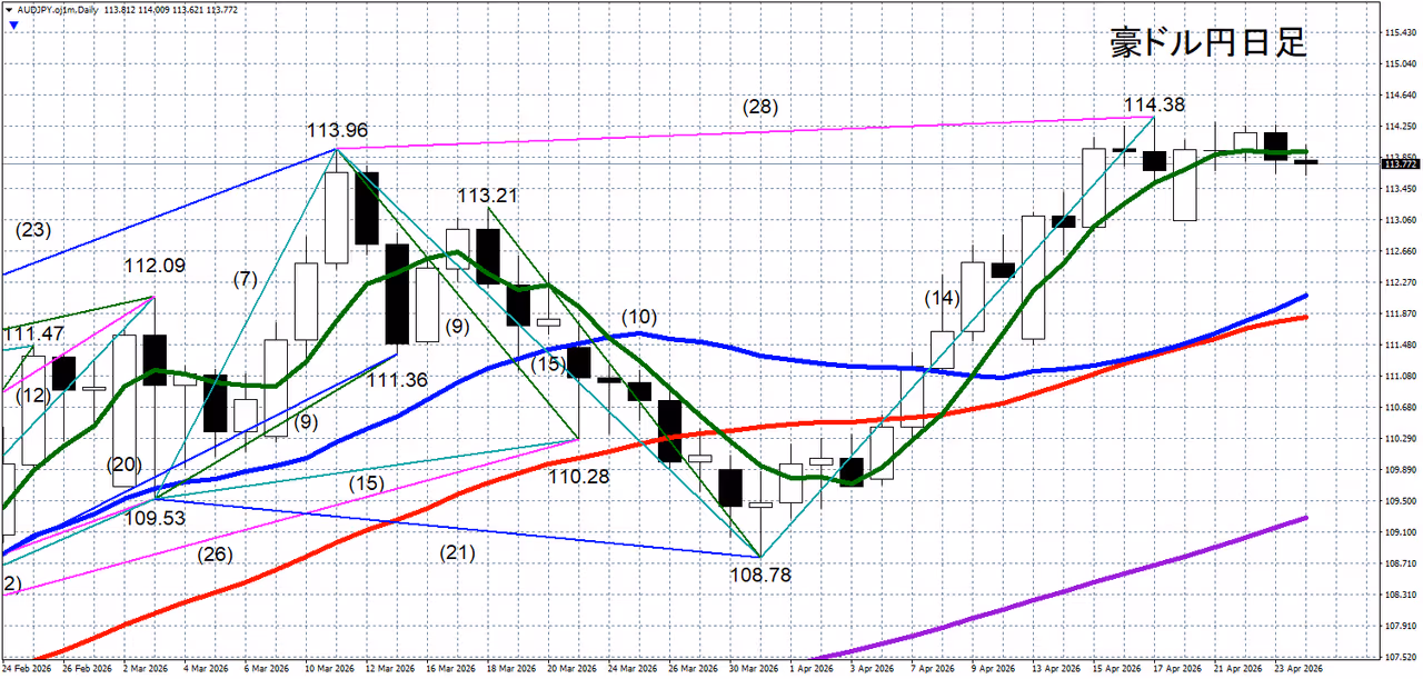 豪ドル円 114.38円は上値ブレイクポイント